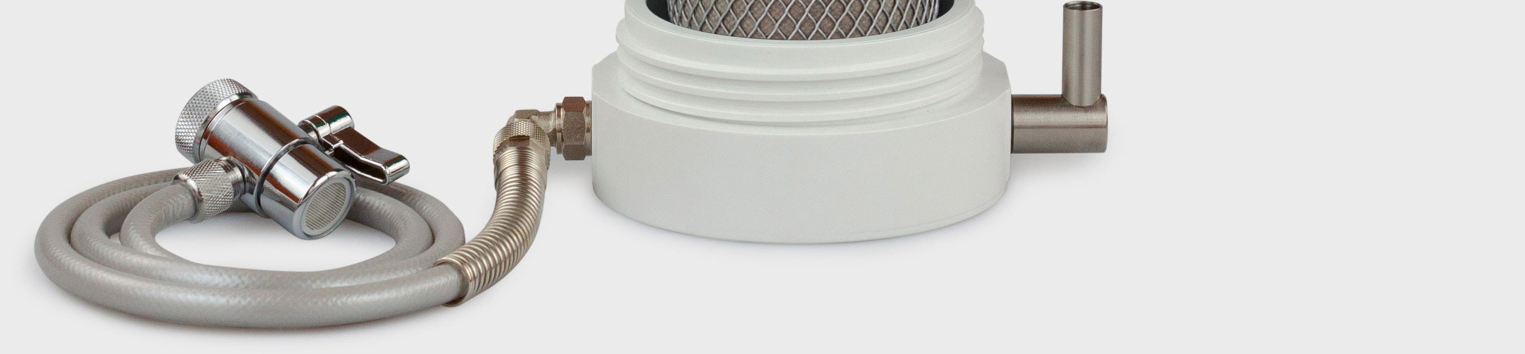 Bei Armaturen mit M24 Innengewinde kannst du mit dem beiliegenden Adapter den Hahnanschluss mit der Armatur verbinden.